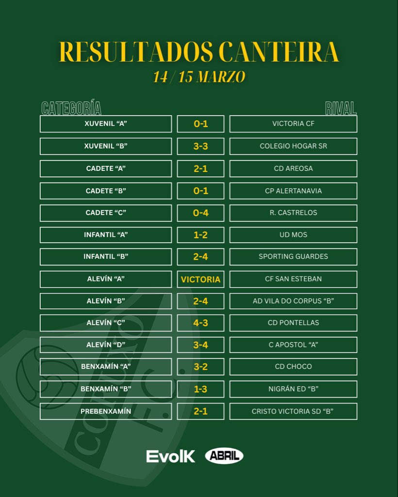 📊𝗥𝗘𝗦𝗨𝗟𝗧𝗔𝗗𝗢𝗦 𝗖𝗔𝗡𝗧𝗘𝗜𝗥𝗔 14/15 Marzo #CoruxoFC #SomosoQueLoitamos pic.x.com/NwtpsO7eJfs://t.co/NwtpsO7eJf