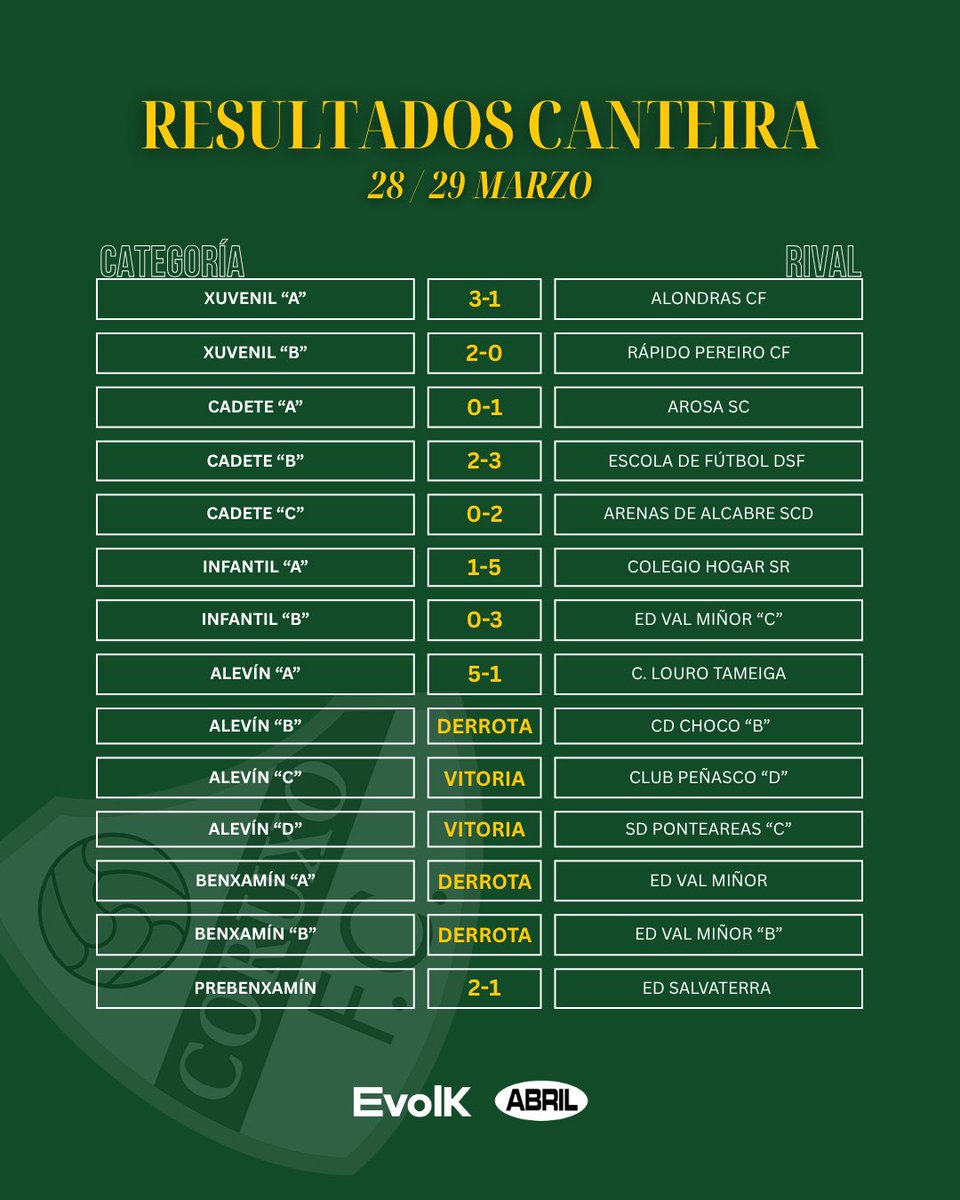 📊𝗥𝗘𝗦𝗨𝗟𝗧𝗔𝗗𝗢𝗦 𝗖𝗔𝗡𝗧𝗘𝗜𝗥𝗔 27/28 Marzo #CoruxoFC #SomosoQueLoitamos pic.x.com/8lxp2GH2jds://t.co/8lxp2GH2jd